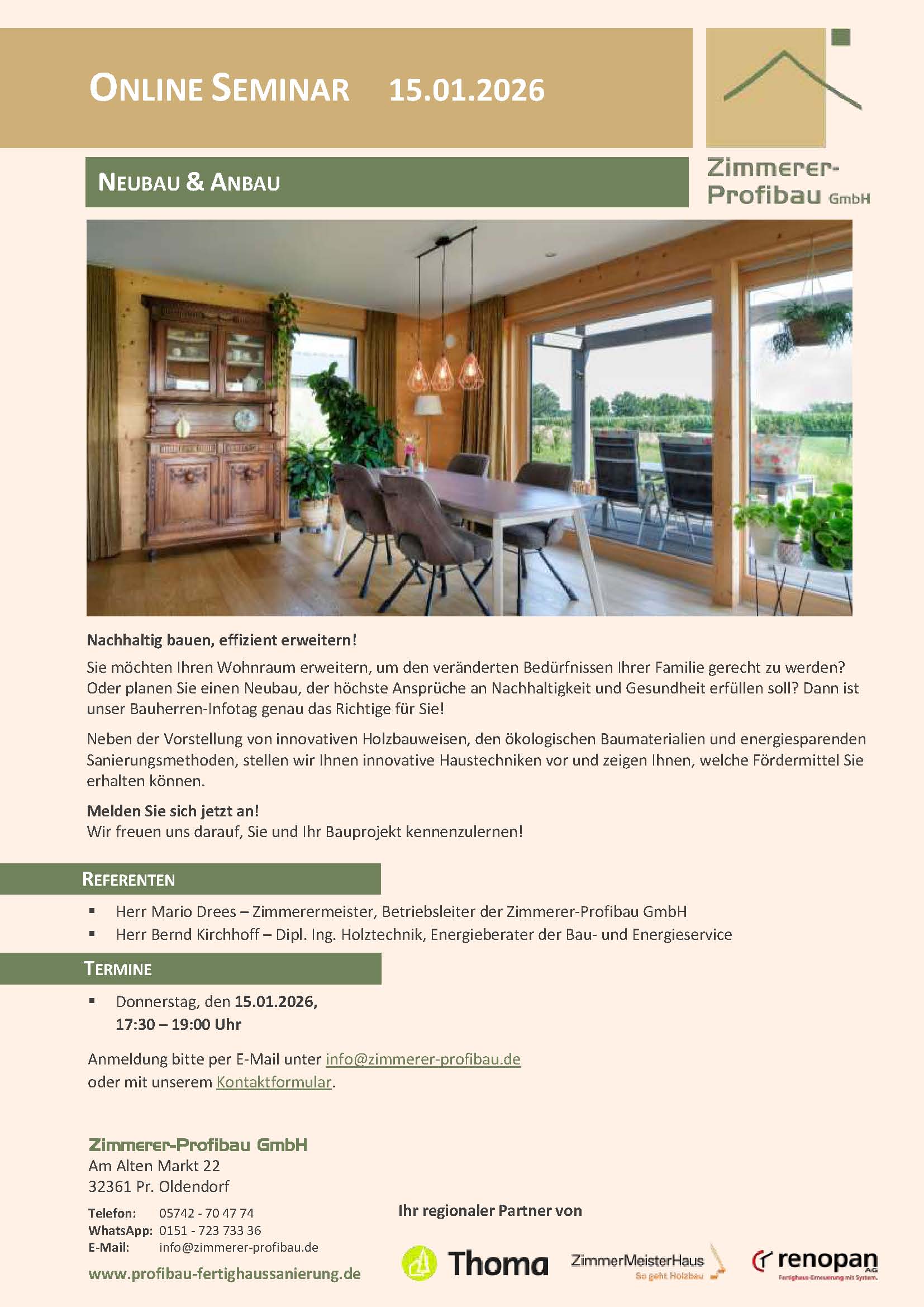 Sie möchten Ihren Wohnraum erweitern, um den veränderten Bedürfnissen Ihrer Familie gerecht zu werden? Oder planen Sie einen Neubau, der höchste Ansprüche an Nachhaltigkeit und Gesundheit erfüllen soll? Dann ist unser Bauherren-Infotag genau das Richtige für Sie!