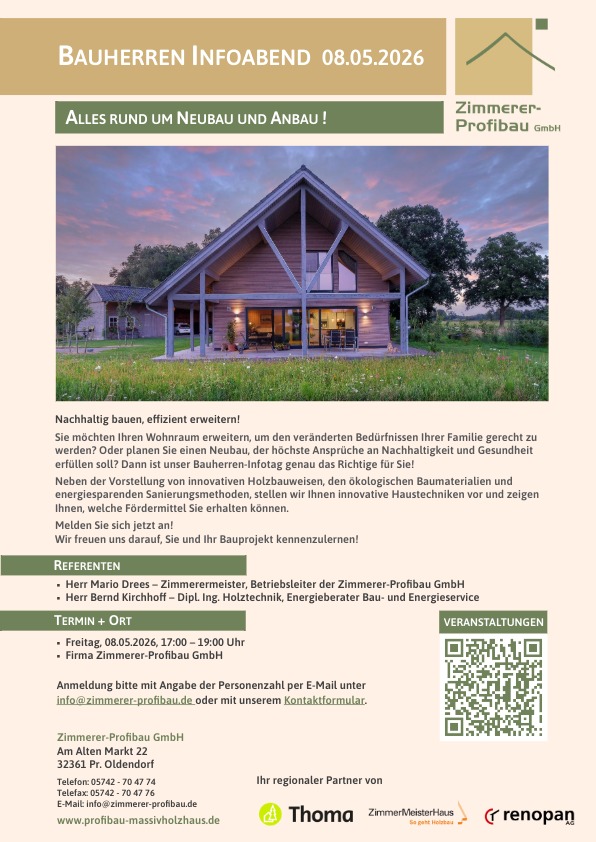 Sie möchten Ihren Wohnraum erweitern, um den veränderten Bedürfnissen Ihrer Familie gerecht zu werden? Oder planen Sie einen Neubau, der höchste Ansprüche an Nachhaltigkeit und Gesundheit erfüllen soll? Dann ist unser Bauherren-Infotag genau das Richtige für Sie!